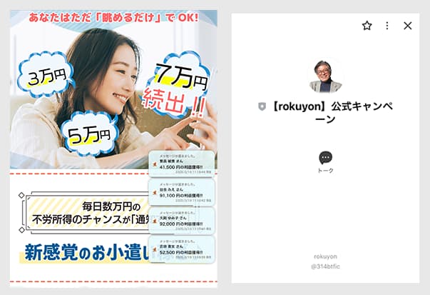 私の経験上、このような案件はLINE登録後に「全然内容が違った!」と誤解を生む表現を使う誇大広告の可能性があります。
