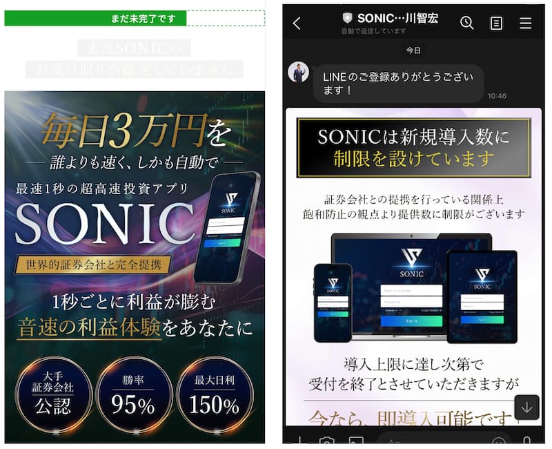 また、一部誇大広告や虚偽があったという声も出ているので、SONIC(ソニック)も同様の怪しさがあります。