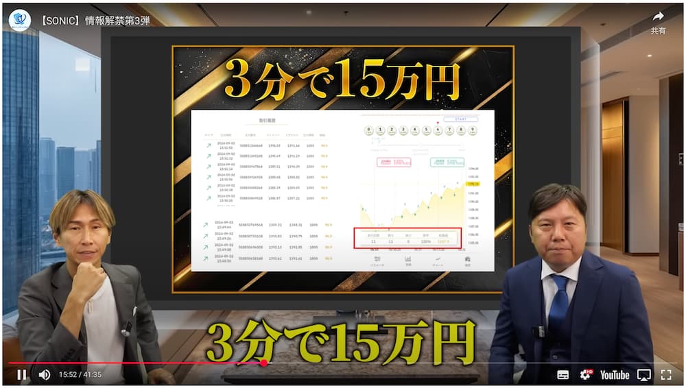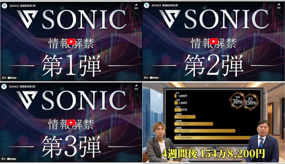 SONIC(ソニック)とは、株式会社ワンダーリアリティが提供する投資システムで、特別なスキームと完全自動売買によって90%〜95%の高い勝率を実現すると謳われています。