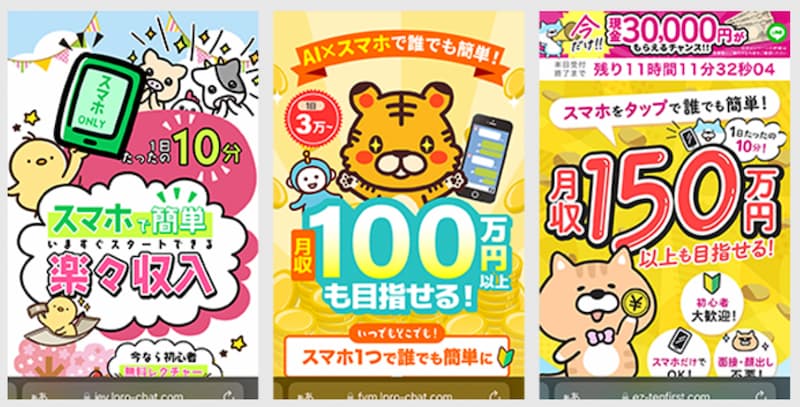スマホひとつで1日5万円狙える、月収50万円が目指せると書かれていますが、