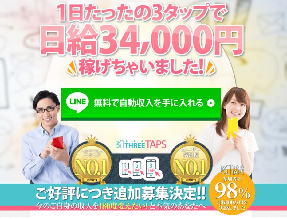 スマホを1日3タップするだけで、毎日3万円以上の収入が目指せます。