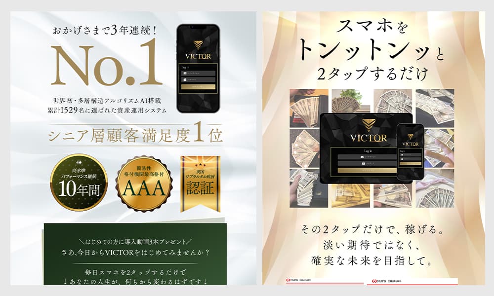 - VICTORシステムが「格付機関AAAの最高格付」などの表記は虚偽