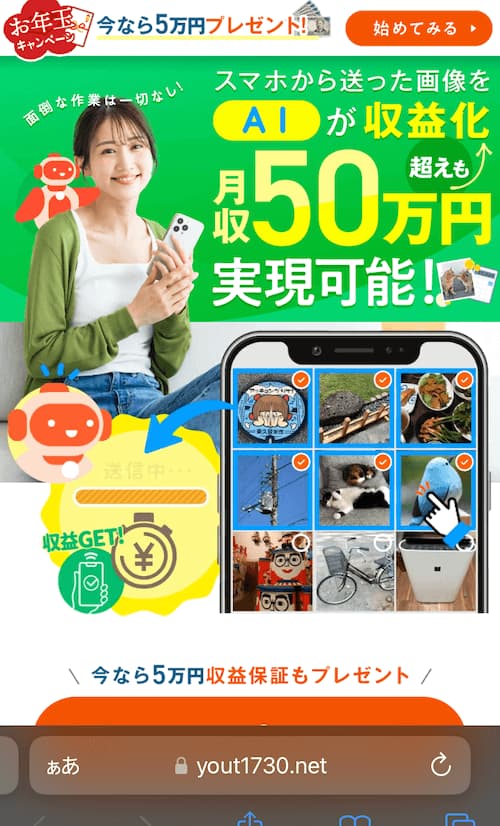 3万円の応援金を受け取るためのリンクを押してみると、「写真を選ぶだけで稼げる副業」という副業案件が出てきましたが、調べてみると怪しい・詐欺と評判が上がっていました。
