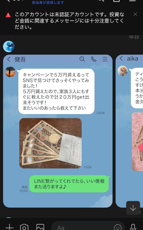また、私のLINEにも「最初は無料だと思って登録したが、実際は高額な副業案件を紹介されただけだった」という報告が寄せられています。