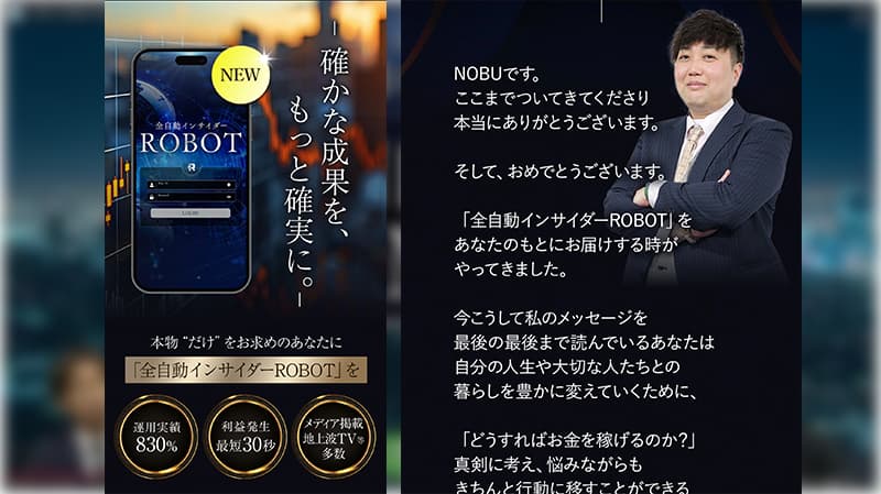 また、全自動インサイダーロボを開発したNOBUの記載がなく、代表の岡村貴弘との関わりもないようですね。